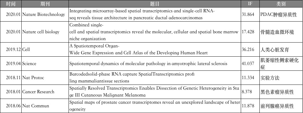 | 2018.10 | Cancer Research | Spatially Resolved Transcriptomics Enables Dissection of Genetic Heterogeneity in Stage III Cutaneous Malignant Melanoma | 8.378 | 黑色素瘤異質(zhì)性 |