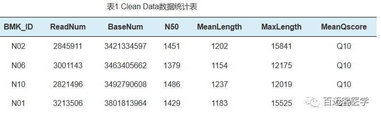 Nanopore測序通過對納米孔的DNA/RNA單分子實時電信號進(jìn)行檢測及對應(yīng),即可計算獲得相應(yīng)堿基的類型,完成序列的實時測定。為確保Reads有足夠高的質(zhì)量,將下機原始測序數(shù)據(jù)(raw reads)過濾短片段和低質(zhì)量的reads,得到clean reads,保證后續(xù)分析的準(zhǔn)確性。