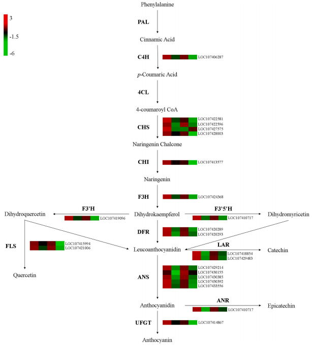 4、類(lèi)黃酮結(jié)構(gòu)和調(diào)控基因的差異表達(dá)