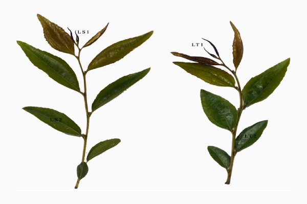 實(shí)驗(yàn)材料:本研究使用了兩個(gè)紫葉棗品種和八個(gè)綠葉棗品種。轉(zhuǎn)錄組和代謝組材料:兩個(gè)紫葉棗品種,“Sanbianhong”和“Tailihong”,?葉芽分別命名為L(zhǎng)S1和LT1,成熟葉分別命名為L(zhǎng)S2和LT2(圖1)