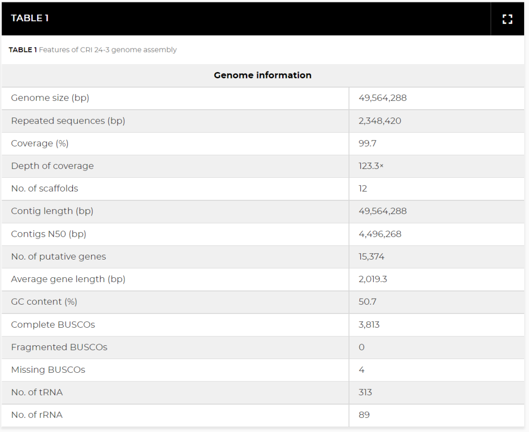 生成并注釋了 CRI 24-3 的高質(zhì)量基因組組裝草圖